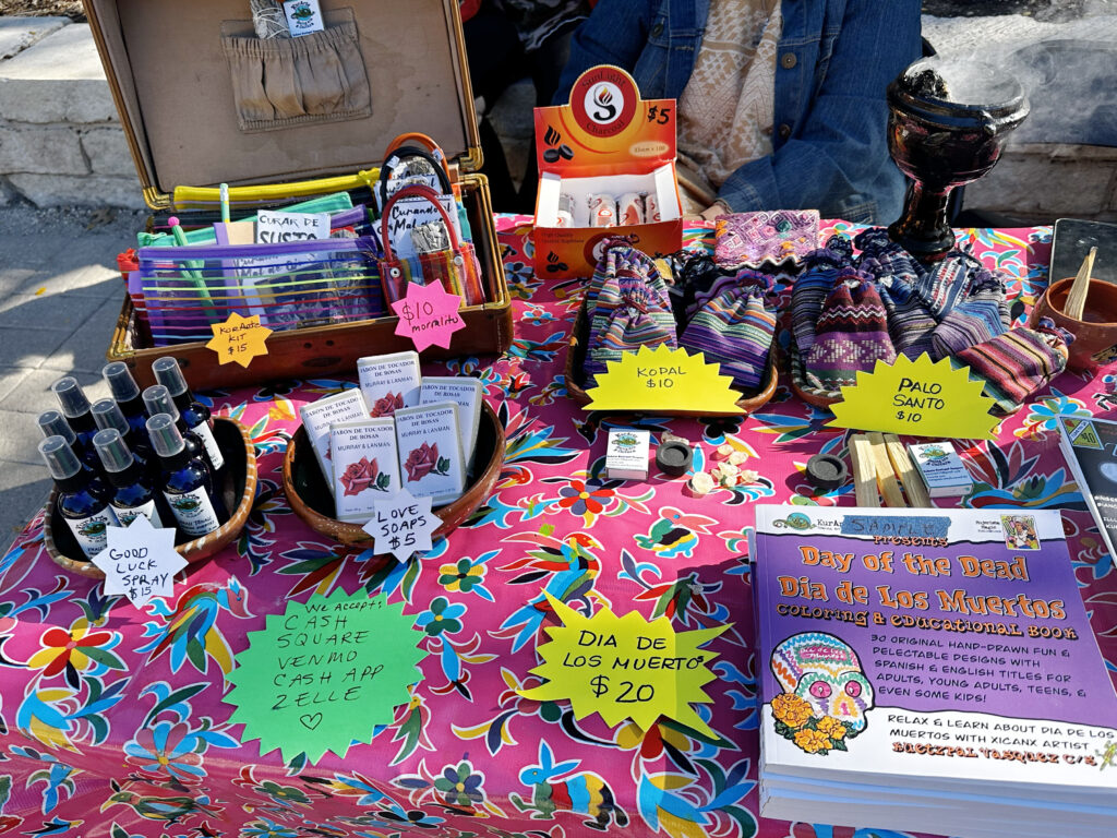 Local artist Kuetzpal Vasquez, owner of KurArte Healing Arts and Cultura, burned Copal, an ancient tree resin used to cleanse and bring in good spirits. Palo Santo — a wood considered sacred by many cultures — is said to treat pain and clear stress and negative energy. Sage, a mixture of herbs and spices is used to purify spaces, remove negative energy and promote healing and wisdom.